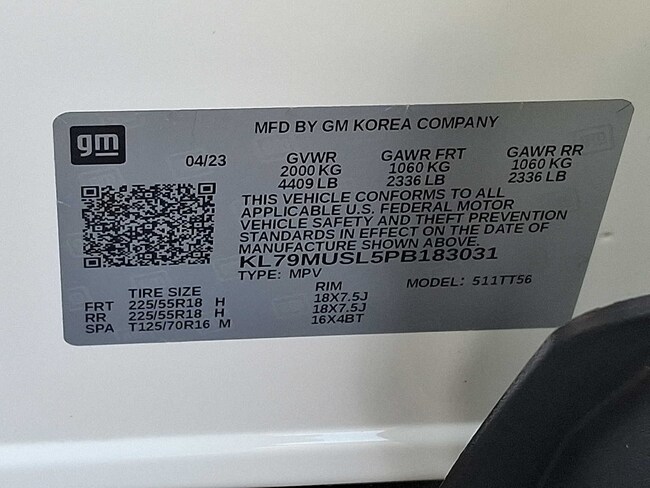 - VIN : KL79MUSL5PB183031
