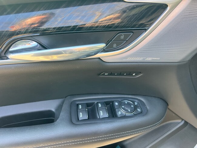 - Opens or closes when the system senses the key fob and the driver extends their foot under the left-hand side of the rear bumper over an image of the Cadillac Crest projected under the vehicle