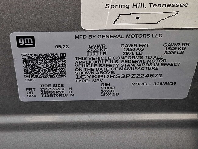 - VIN : 1GYKPDRS3PZ224671